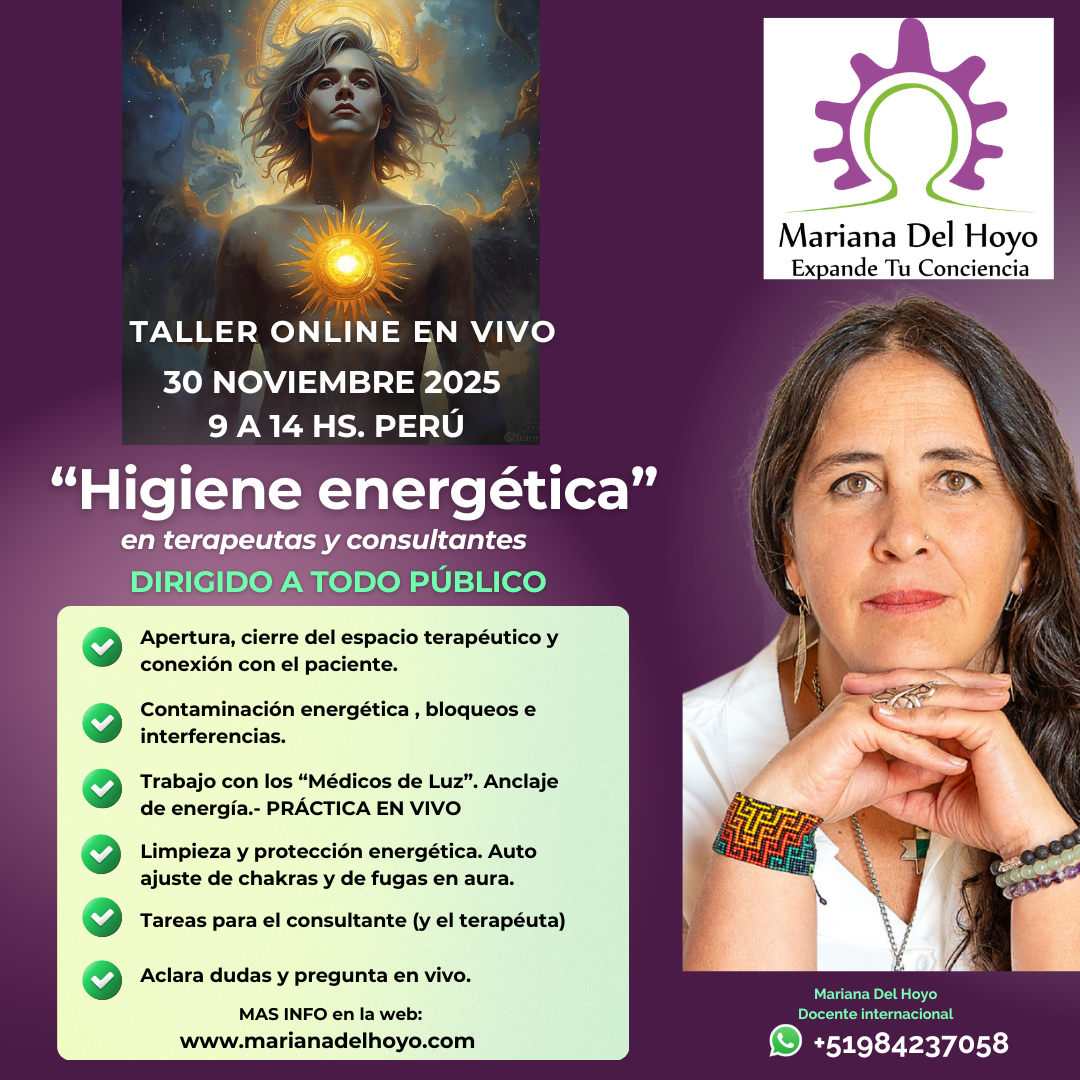 Su experiencia, sensibilidad y claridad metodológica sostienen este taller de higiene energética, ofreciendo a los terapeutas herramientas precisas para cuidar su campo, proteger su práctica y potenciar su labor sanadora.